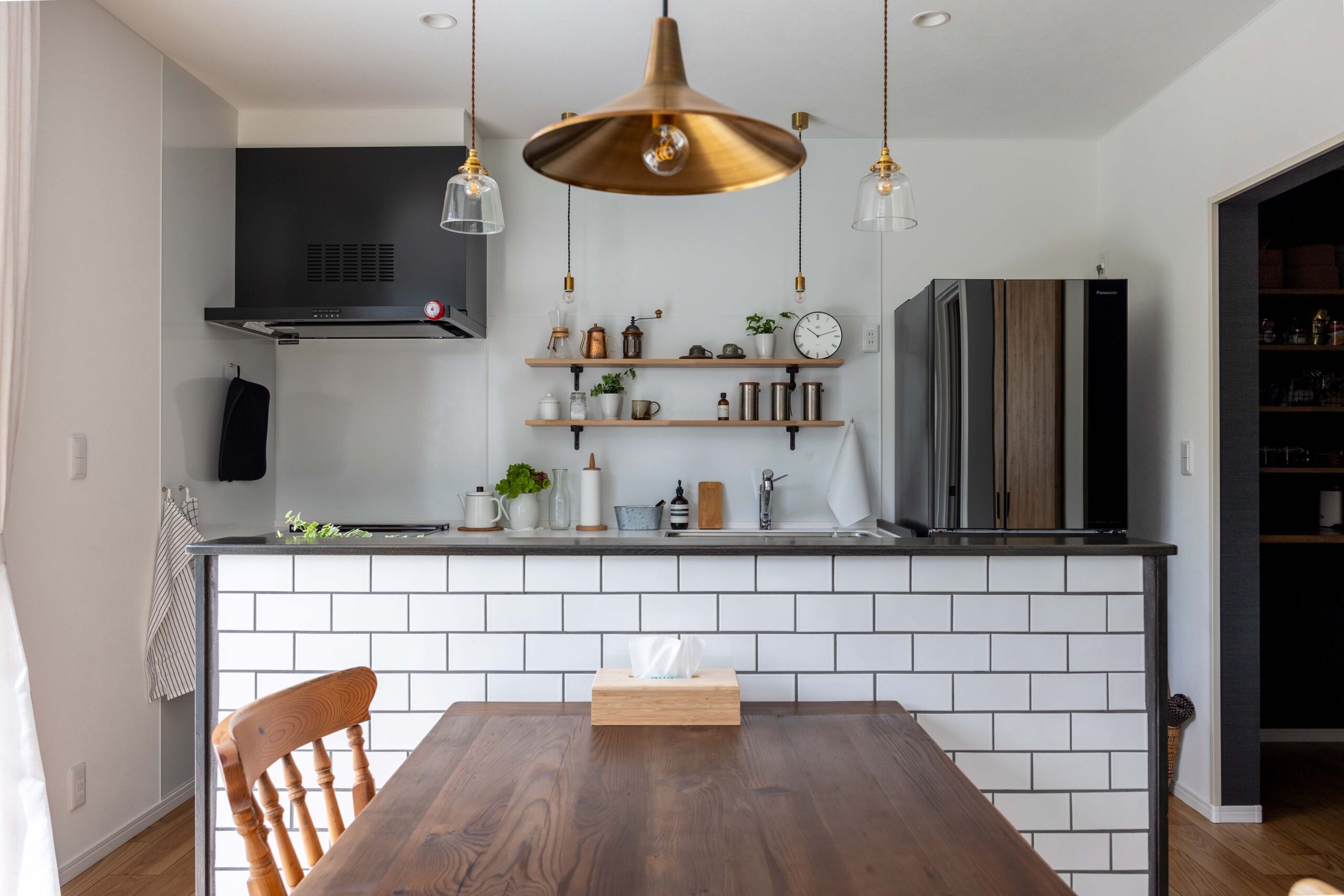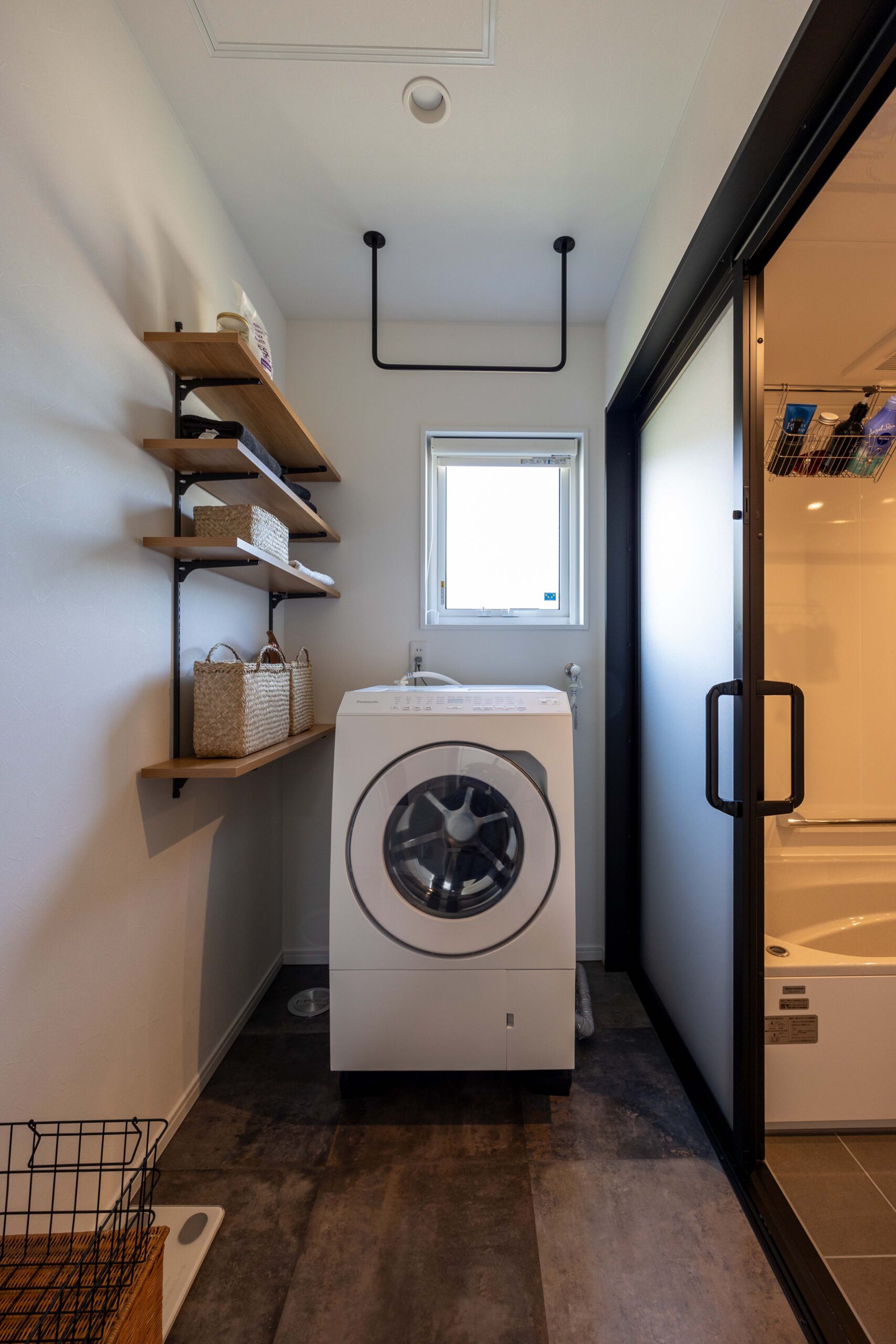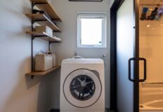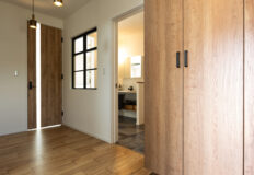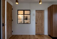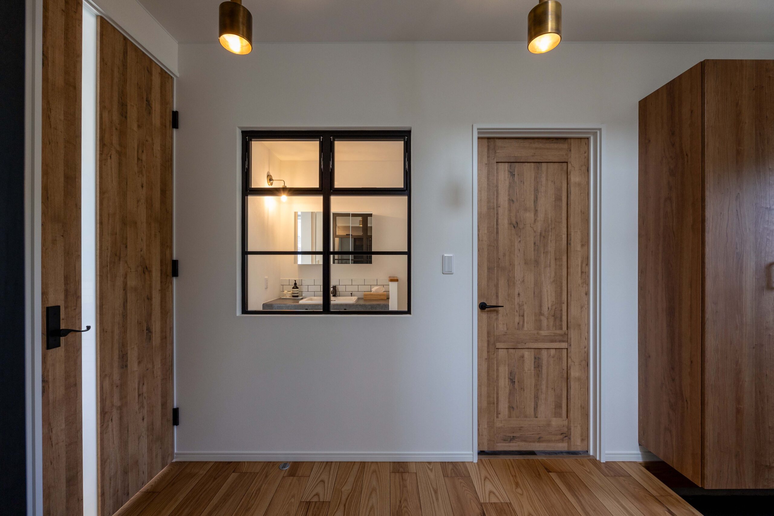 廊下と洗面の間にカフェ窓を採用し