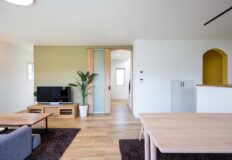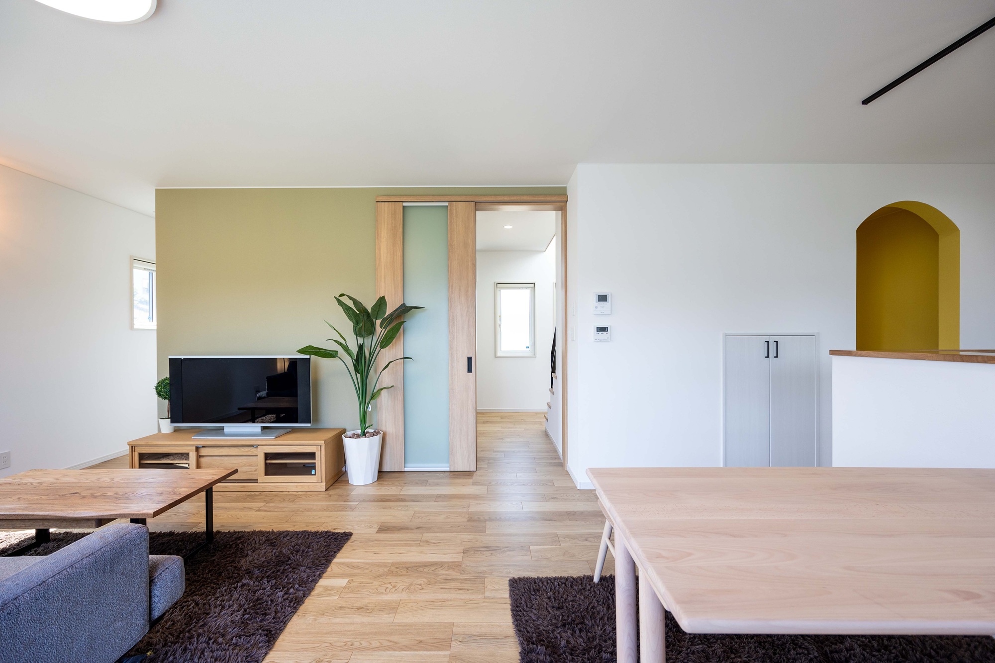 家族が集まるリビングは薄いグリーンをアクセントにして